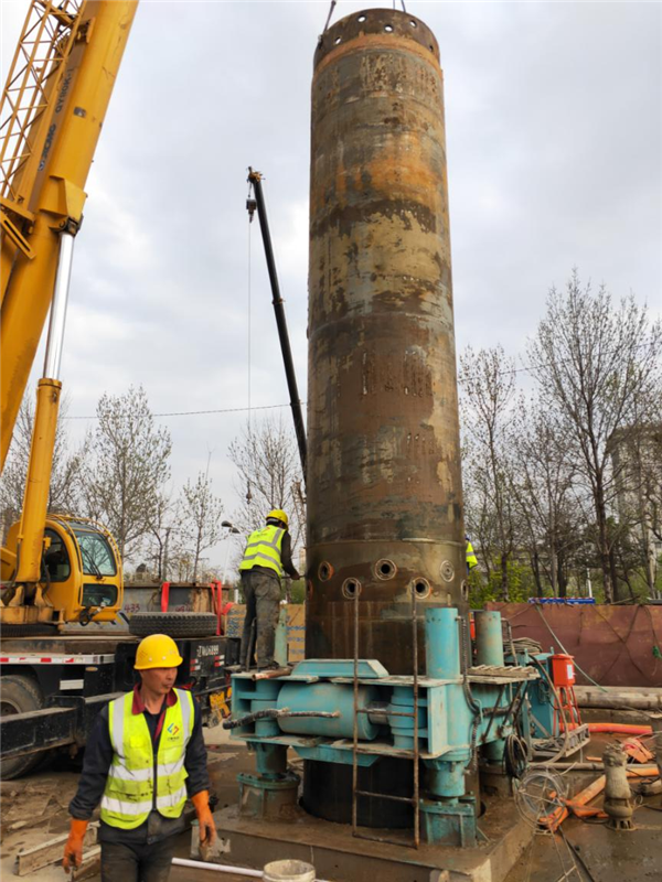 在鉆孔施工過程中為保護(hù)地鐵結(jié)構(gòu)的安全,我司采用全回轉(zhuǎn)全套管鉆機(jī)的工藝對其進(jìn)行施工。施工現(xiàn)場機(jī)械設(shè)備:全回轉(zhuǎn)全套管鉆機(jī)2臺、旋挖鉆機(jī)2臺、拔管機(jī)2臺、