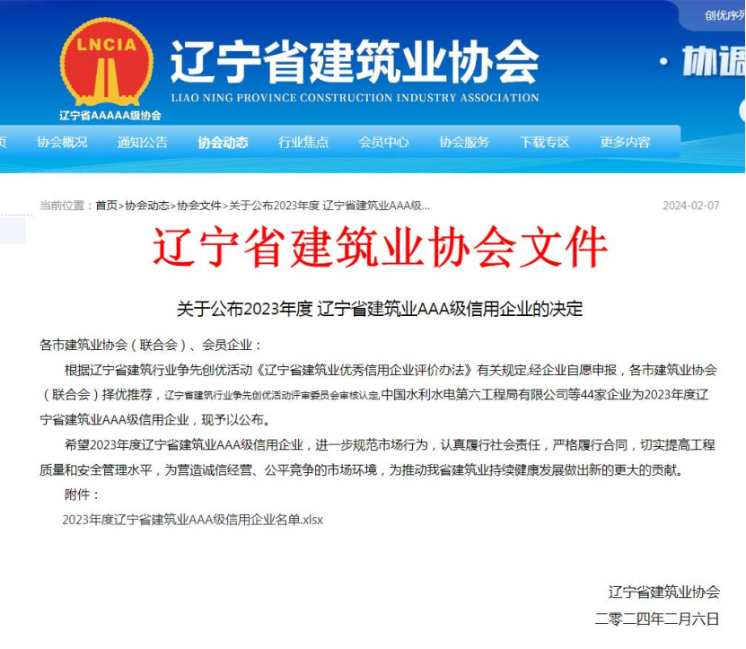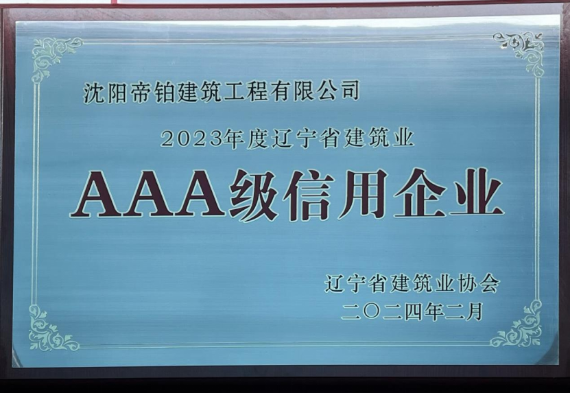 根據(jù)遼寧省建筑行業(yè)爭先創(chuàng)優(yōu)活動《遼寧省建筑業(yè)優(yōu)秀企業(yè)認(rèn)定辦法》《遼寧省建筑業(yè)企業(yè)優(yōu)秀經(jīng)理認(rèn)定辦法》《遼寧省建筑業(yè)企業(yè)優(yōu)秀項(xiàng)目經(jīng)理認(rèn)定辦法》《遼寧省建筑業(yè)優(yōu)秀信用企業(yè)評價(jià)辦法》有關(guān)規(guī)定,各市建筑業(yè)協(xié)會(聯(lián)合會)擇優(yōu)推薦,遼寧省建筑行業(yè)爭先創(chuàng)優(yōu)活動評審委員會審核認(rèn)定,沈陽帝鉑建筑工程有限公司被評為2023年度遼寧省建筑業(yè)AAA級信用企業(yè)。
