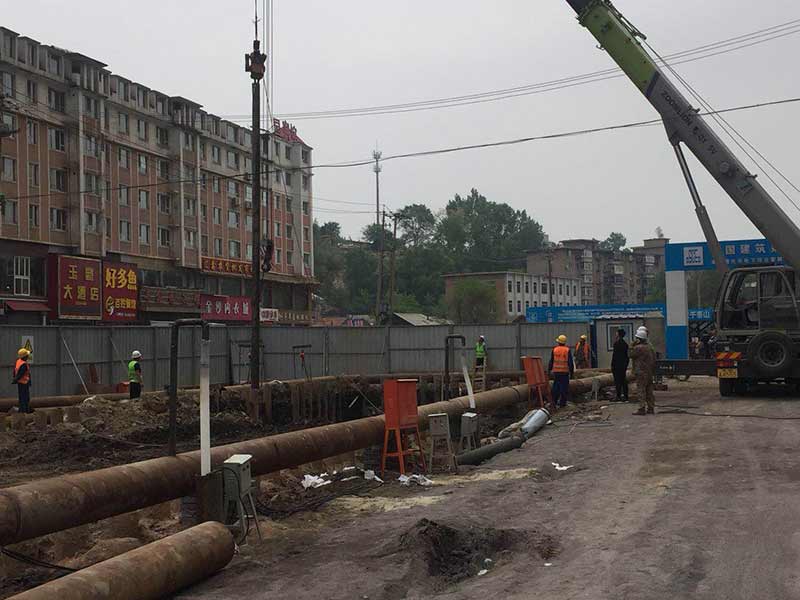 鋼支撐安裝及拆除的順序?yàn)椋褐ёo(hù)樁施工→開挖至支撐施工作業(yè)面下0.5米→設(shè)置支撐→開挖至坑底標(biāo)高→地下結(jié)構(gòu)完成后回填至-1.5米,填土夯實(shí)→拆除鋼支撐。