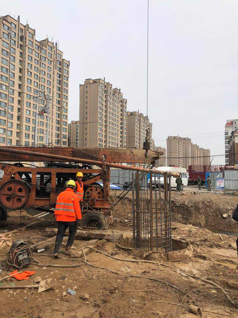 降水井采用φ219橋式濾水管,井深12米,井間距為10米。橋式濾水管濾水性高于普通的無砂水泥管。排水管線采用φ400*6螺旋鋼管。水泵功率為25KW.h,水泵揚(yáng)程30米的潛水泵。降水井施工步驟:273鋼管樁施工→橋式濾水管纏紗布→下橋式濾水管→拔出273鋼管樁。