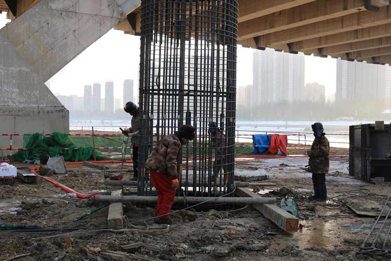 長(zhǎng)青橋東西兩側(cè)新建橋梁下方采用長(zhǎng)螺旋鉆孔灌注樁作為臨時(shí)支架基礎(chǔ),樁徑為800mm,樁長(zhǎng)為10m和15m。
